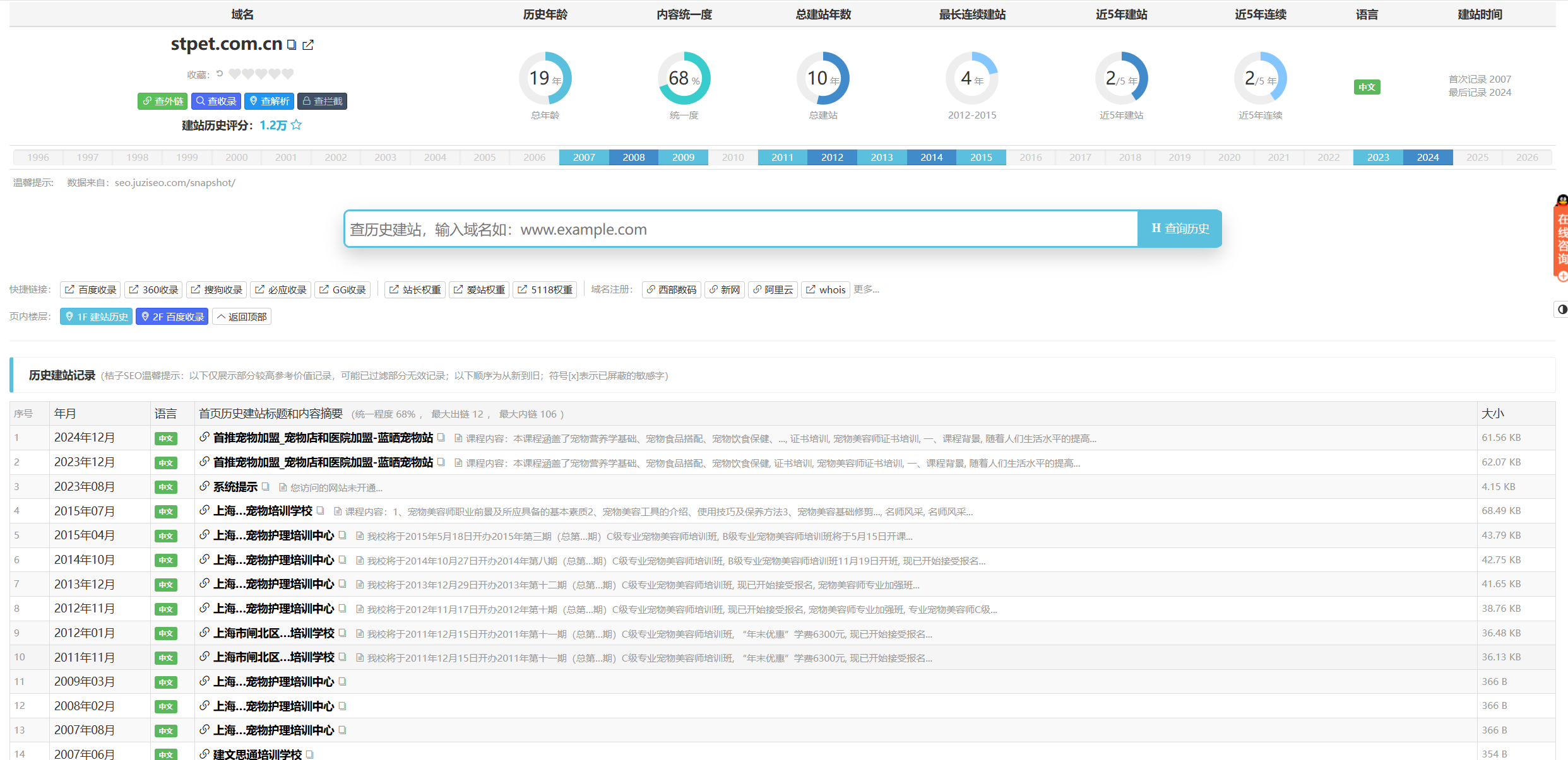以下为桔子seo网评评测,属于很健康的20年老域名!